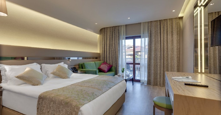 Descriere Hotel Gran AquaHotelul Gran Aqua se extinde pe o suprafata de 28.000 mp si are un total de 234 de camere (180 camere standard, 18 camere family si 36 apartament family.Tip masa: