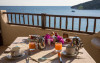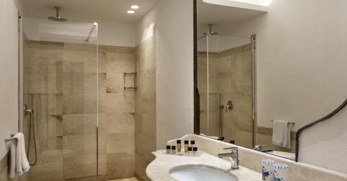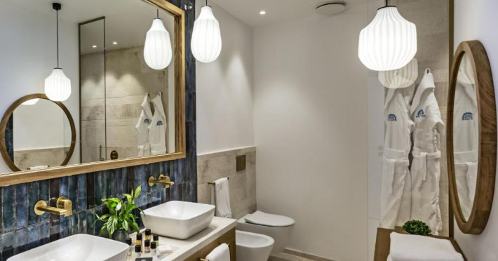 Camerele luminoase și confortabile sunt decorate in stil mediteranean și dispun de balcoane sau terase care permit admirarea peisajului marin. Piscina hotelului este inconjurată de șezlonguri și umbrele, creand un spațiu perfect pentru relaxare.