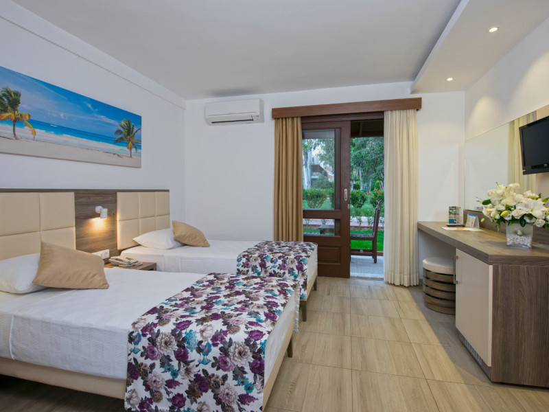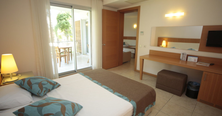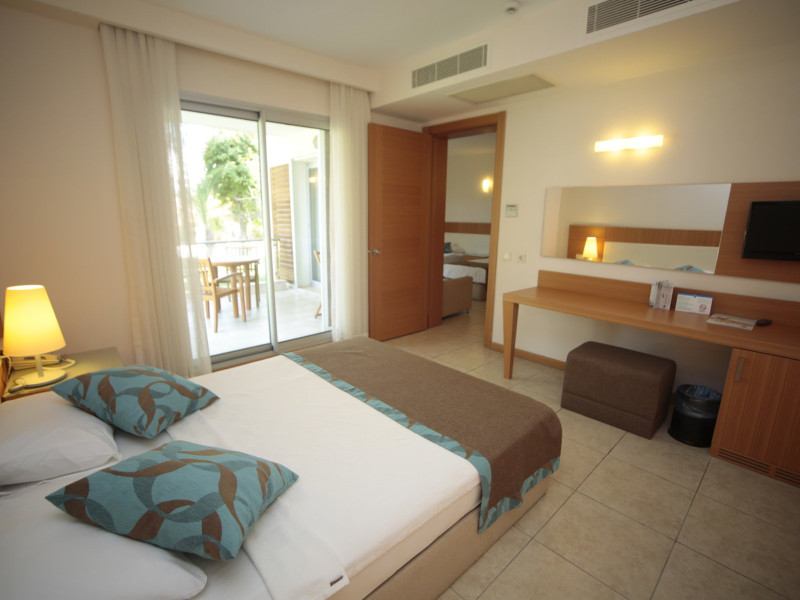 Resort beneficiaza de restaurant principal cu preparate internationale, buffet, scaune pentru copii. 2 baruri in lobby si la piscina,3 piscine exterioare,cu sezlonguri si umbrele incluse. Aquapark pentru copii cu tobogane.