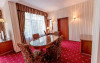 Apartamentul Prezidential este format dintr-un apartament Deluxe si o camera VIP ce comunica printr-o usa ce se poate inchide sau deschide in functie de dorintele clientilor.