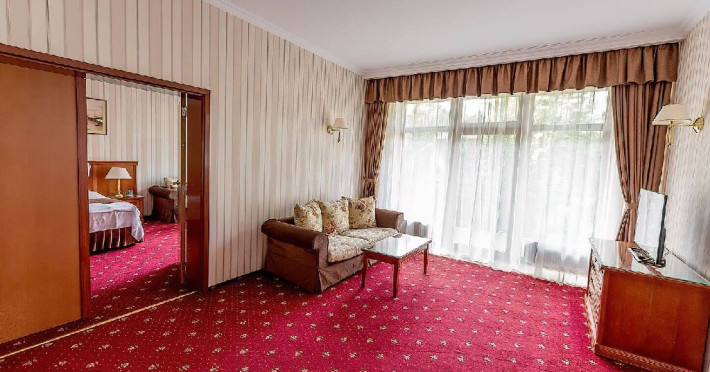 Camerele family sunt formate dintr-o camera VIP si un dormitor cu pat matrimonial/doua paturi separate(fara baie) ce comunica printr-o usa.