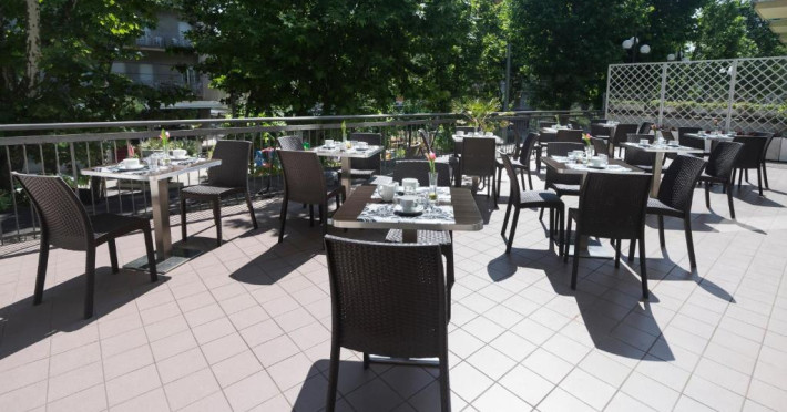 Hotelul Club Meeting are terasă la soare, cu vedere panoramică, și este situat in Rimini, pe promenada de la malul mării și la doar 100 de metri de plajă. Autobuzul 11 circulă spre și dinspre gară.