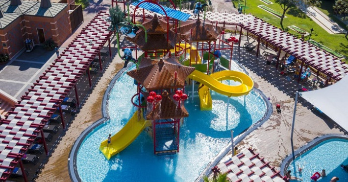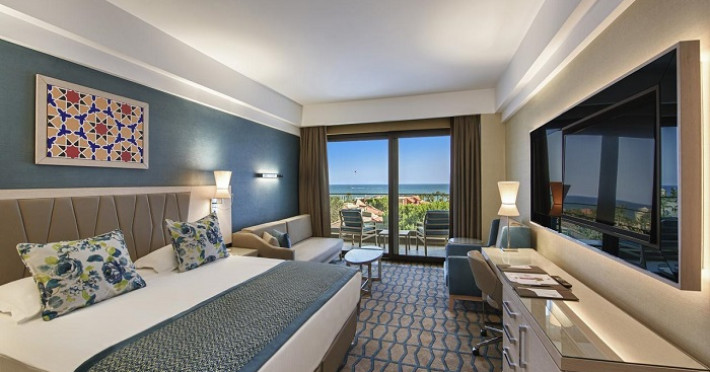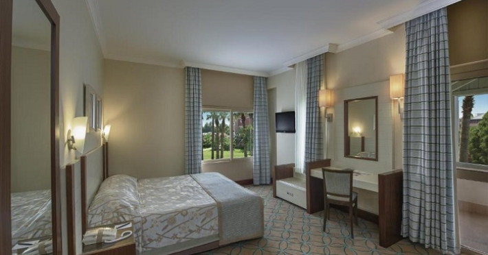 Hotelul dispune de restaurant principal cu bufet, restaurant si bar la plaja, restaurante a la carte: Sofra (turcesc), La Prima (italienesc), Red Far East (oriental), Grill Corner, El Porto (mexican) si restaurant pescaresc cu rezervare in prealabil, diferite baruri. Contra cost: doctor, spalatorie si calcatorie, baby sitting, telefon, fax, internet si jocuri pe calculator, centru comercial, coafor, rent-a-car, wi-fi internet gratuit. Plaja: Hotelul are plaja proprie, sezlonguri, umbrelute si prosoape gratuite. Sport si divertisment: piscine exterioare, piscine pentru copii, piscina de relaxare, tobogane, centru fitness, sauna, baie turceasca, terenuri de tenis, tenis de masa, sporturi nautice nemotorizate. Contra cost: nocturna, echipamentul si lectiile de tenis, masaj, biliard, jocuri pe calculator si sporturi nautice cu motor. Se organizeaza programe de divertisment in timpul zilei si spectacole seara, mini club pentru copii, cu diferite programe pentru copii cu varste intre 4 si 12 ani.