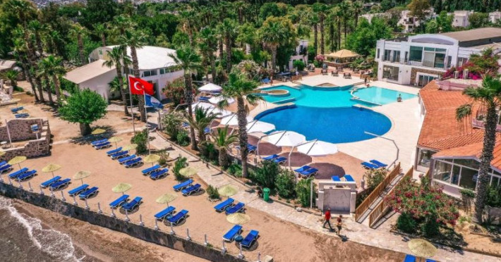 Hotelul Club Muskebi este situat pe malul mării în Ortakent, Bodrum, oferind o experiență relaxantă la mare datorită plajei lungi și a apei curate cu steag albastru. Amplasarea sa lângă malul mării și în mijlocul copacilor îl face ideal pentru turiștii care caută relaxare într-un mediu confortabil și sigur.Descriere hotel