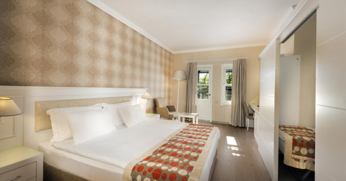 Hotelul este localizat in statiunea Side, la 75 km de aeroportul din Antalya si la 10 km de orasul Mangavat. Renovat in 2012, acest hotel ofera cazare in cladirea principala de 3 nivele si 15 cladiri Club cu 2 nivele. Camerele spatioase sunt dotate cu baie, uscator de par, aer conditionat, televizor, telefon si minibar. Restaurantul principal serveste o varietate de preparate, de asemenea mai sunt disponibile si 3 restaurante a la carte. Alte facilitati ale hotelului includ piscine exterioare,topogane, spalatorie, cabinet medical, centru SPA si sala de conferinta. Copii au si ei acces la piscina exterioara, loc de joaca si miniclub.Datorita dinamicitatii domeniului disponibilitatea ofertelor se modifica de la un moment la altul. De aceea ofertele sunt valabile in limita locurilor disponibile. Agentia nu este responsabila pentru eventualele neconcordante care pot aparea intre informatiile privind tarifele si alte detalii din site si informatiile primite in agentie. In aceste cazuri vor avea prioritate, intotdeauna, informatiile primite in agentie.
