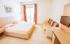 Toate camerele hotelului sunt dotate cu aer condiționat (din 15/06 până în 15/09),TV LCD cu port USB, televiziune prin satelit, minibar cu plata, seif la recepție cu plata, birou, cadă/duș, balcon, articole de toaleta, uscător de păr.