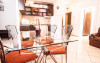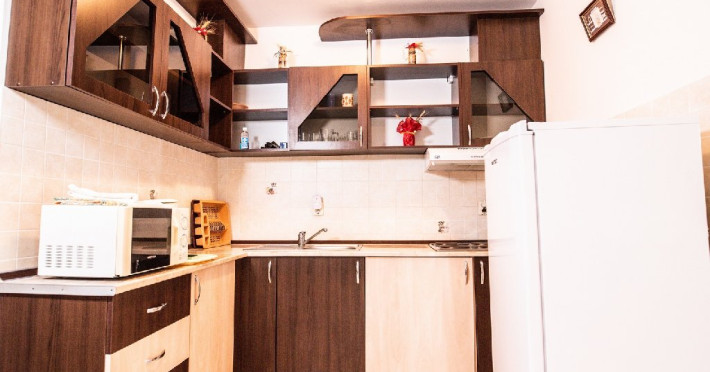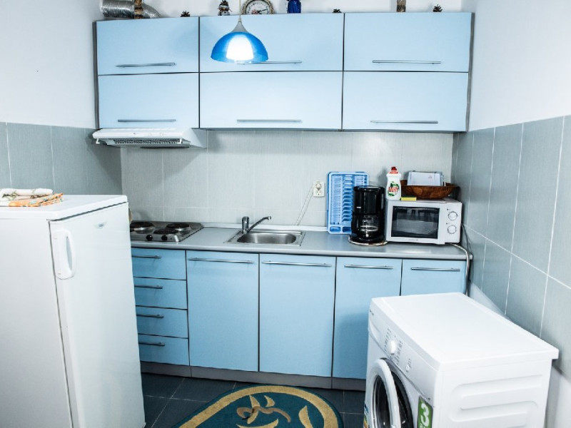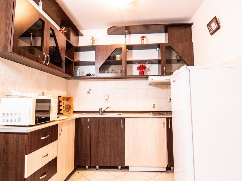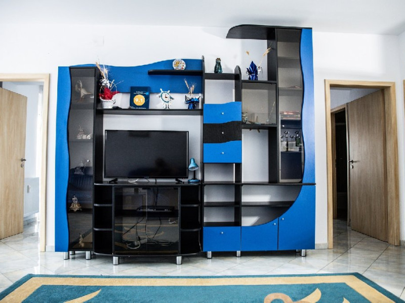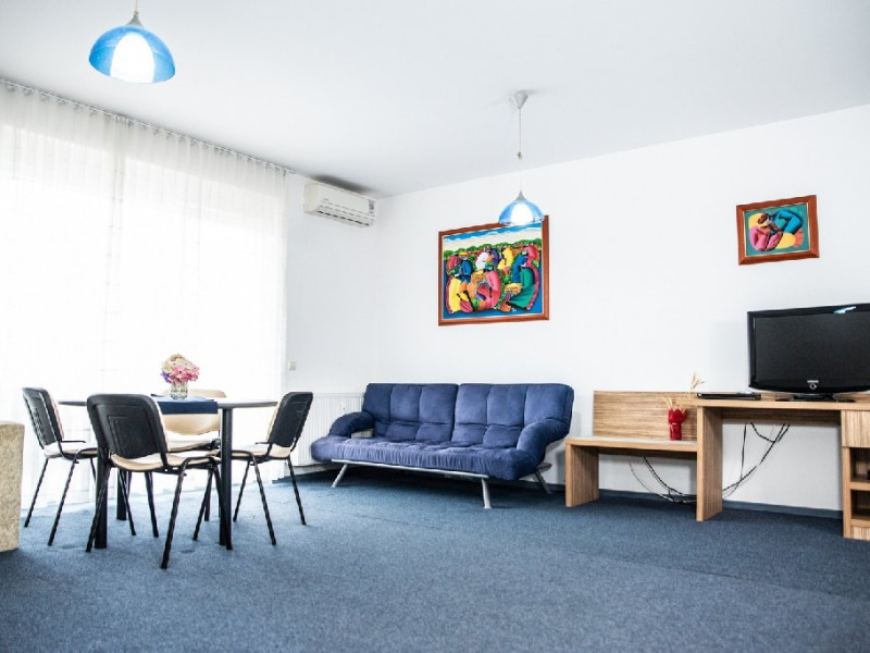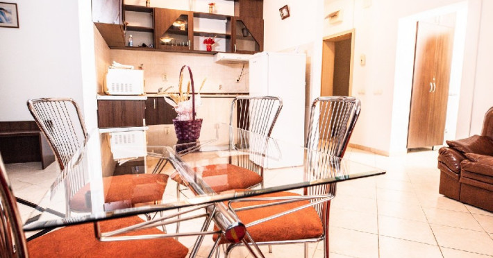 Apartamentul este amenajat in stil modern, confortabil si ofera toate facilitatile necesare unui turist la Marea Neagra: a living cu canapea extensibila, fotolii, televizor, dvd player, aer conditionat, Internet, seif; bucatarie complet utilata cu plita electrica, minibar, vesela, microunde, cafetiera, masina de spalat; dormitor cu pat matrimonial, fier si masa de calcat, uscator de par; o baie cu chiuveta si cabina de dus, cealalta doar cu toaleta (WC); 2 balcoane cu uscator. De asemenea oaspetii nostri pot gasi in apartamente si prosoape si asternuturi pentru utilizarea pe perioada sederii. In toate apartamentele exista serviciu de menajera zilnica.