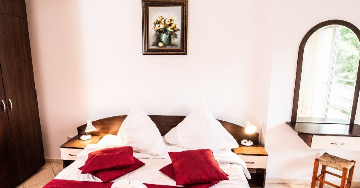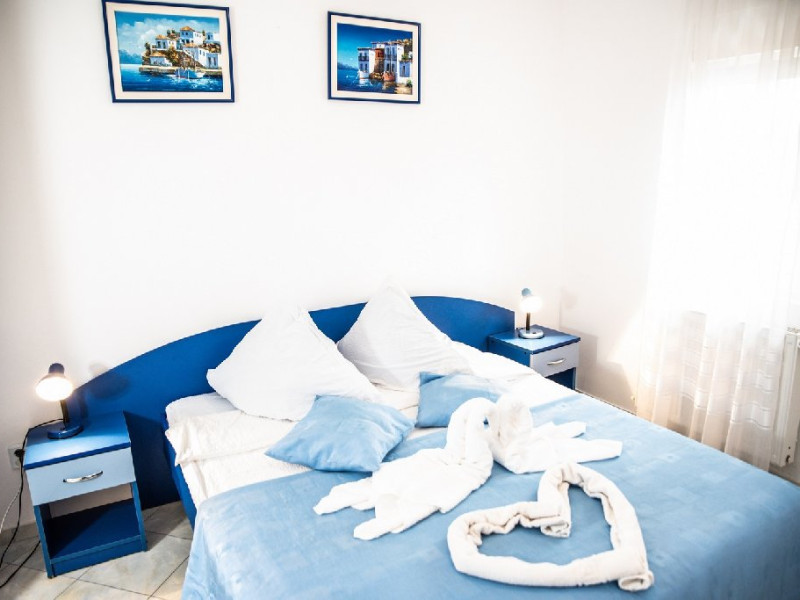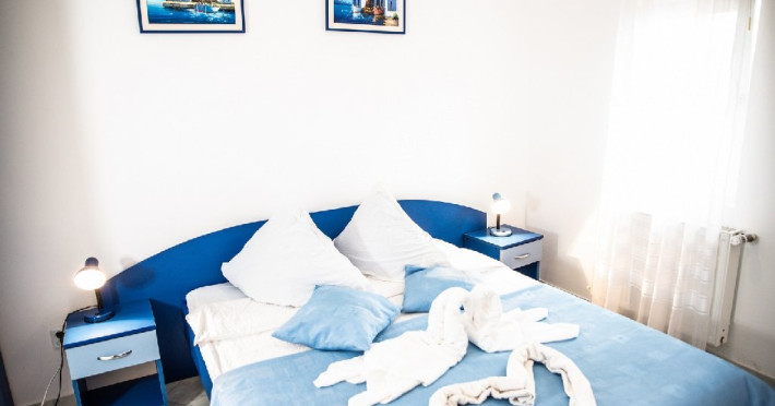 In apartamente pot fi acomodate pana la 6 persoane. Apartamentele au doua dormitoare cu pat matromonial, fiecare cu baie proprie cu dus sau cada, un living in care se regaseste o bucatarie de tip open space complet echipata (cuptor cu microunde, plita electrica, frigider, chiuveta, cafetiera, toaster, vesela, ustensile de bucatarie, vesela, tacamuri si pahare etc), living spatios cu zona de relaxare si TV si o terasa mare, amenajata cu scaune si masa, ce da spre vegetatia ce inconjoara Clubul Onix.