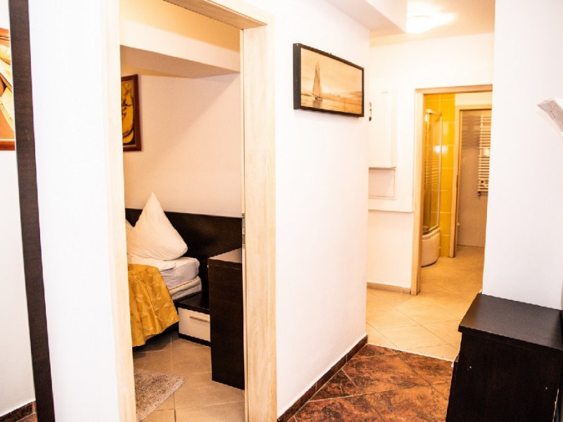 Apartamentul este amenajat in stil modern si ofera toate facilitatile necesare unui oaspete la Marea Neagra. Livingul are o zona de relaxare cu o canapea extensibila, televizor, aer conditionat, Internet, seif; bucatarie utilata cu plita electrica, frigider, vesela, pahare, cuptor cu microunde, cafetiera, masina de spalat rufe; un dormitor spatios cu pat matrimonial, un dormitor mic cu doua paturi de o persoana, o baie cu dus; balcon amenajat cu mese si scaune, acesta reprezentand si un spatiu pentru fumatori, ca si dotari mai putem enumera si: fier si masa de calcat, uscator de par. In toate apartamentele Neptun Apartments ofera oaspetilor sai prosoape si asternuturi ce pot fi utilizate pe perioada sederii.
