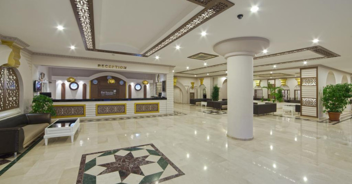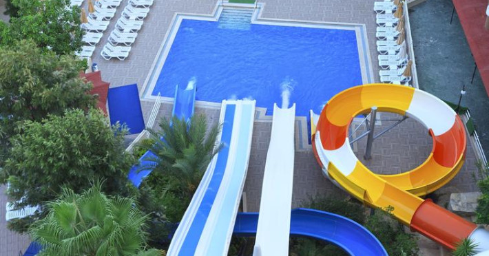 Locatie: Hotelul se afla la 130km de aeroportul Antalya si la 38km de Alanya – Aeroportul Gazipasha. Centrul orasului Alanya este la 7km distanta. Facilitati hotel: Restaurantul hotelului are o terasa cu vedere la Castelul din Alanya si ofera preparate locale si internationale. Complexul ofera multiple facilitati pentru copii cum ar fi topogane de apa si teren de joaca.Alte facilitati: 8 baruri, patiserie (inghetata, fursecuri, ceai, cafea) gozleme, 4 piscine exterioare, piscina interioara , 5 tobogane, medic la solicitare, centru SPA, coafor , lant de magazine, spalatorie, curatatorie chimica, sala de conferinte (pentru 53 si 350 pers.), internet cafe (contra cost) internet WiFi (in lobby, gratuit). RESTAURANTE SI BARURI: Snack Bar Bar pe Plajă Gustare de Noapte Patiserie My Kumpir Clătite Turcești Înghețată Grătar A la Carte Restaurant cu Pește A la Carte Facilitati camera: Dus Canapea TV Minibar Aer conditionat Telefon (taxa suplimentara) Wi-Fi (taxa suplimentara) Seif (taxa suplimentara) Cana/Kit de ceai/cafea Uscator de par Uscator de haine Kit de igiena Plaja: Plaja se afta la 900 de metrii cu transport gratuity, iar schimbul prosoapelor de plaja au extra cost.Localizare