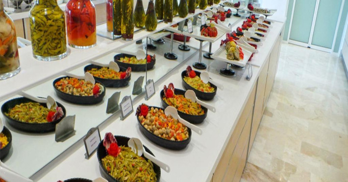 La Club Sardinia oaspeții au la dispoziție un restaurant care servește mâncare în stil bufet. Preparate din bucătăria internațională așteaptă să fie degustate în fiecare zi la micul dejun, prânz și cină. Masa poate fi servită atât în interior, cît si în aer liber, pe terasă, în funcție de vreme. Sunt disponibile 2 baruri unde oaspeții pot avea diverse băuturi răcoritoare sau alcoolice.