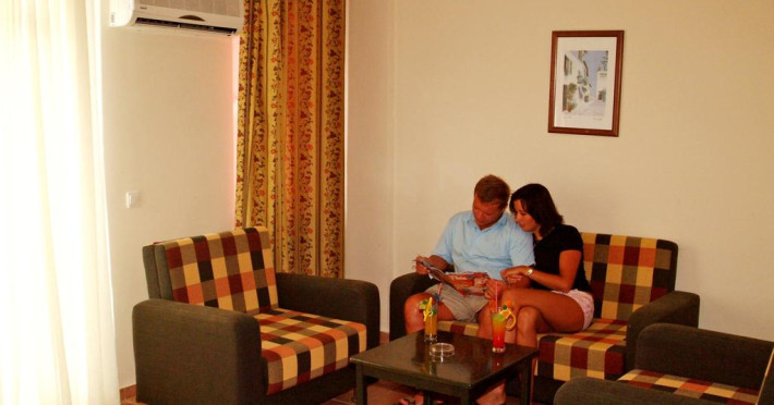 Camerele au balcon cu masă și scaune unde pot fi petrecute momente de relaxare. Camerele confortabile de la Club Sidar Hotel au pardoseală de gresie/ marmură, aer condiționat, Tv cu canale prin satelit și seif. Oaspeții au la dispoziție serviciul de room service pentru a servi masa sau diverse băuturi. În camere există baie cu cadă sau duș ce are în dotare foehn și articole de toaletă gratuite. Oaspeții au acces gratuit la serviciul Wi-fi în camere. Curățenia in cameră se face zilnic. Fiecare unitate de cazare include o chicinetă utilată cu frigider, plită de gătit și ustensile de bucătărie. De asemenea, sunt disponibile o zonă de luat masa și un cuptor pentru prepararea mâncărurilor. Proprietatea oferă camere pentru familie cu o suprafață mai mare și un număr mai mare de paturi față de cele standard. Se pot rezerva de asemenea camere pentru nefumători.
