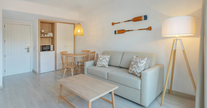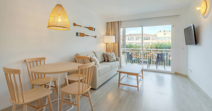 The aparthotel Club Simo is located approximately 600 m from a beach. The nearest restaurants and bars can be found within 400 m. The city centre is around 400 m away. The hotel has a 24h reception, Wi-Fi, a jacuzzi, a first aid kit as well as parking spaces. In the outdoor area of the property you will find a garden as well as a supervised pool, where sun umbrellas are available for free. Inside the hotel you can use a heated indoor pool. For the young hotel guests there is a playground. You can store your luggage in the hotel's storage room. There is also a laundry service available at an additional cost to customers. If you want to explore the holiday region, you can use the car rental service close to the hotel (extra fee). Pets like cats and dogs up to 15 kg are allowed in the hotel (on request). Euro/Master Card and Visa are accepted as means of payment. Catering As catering services the hotel offers all-inclusive, half board plus and full board plus. Breakfast is offered from the buffet. Distances