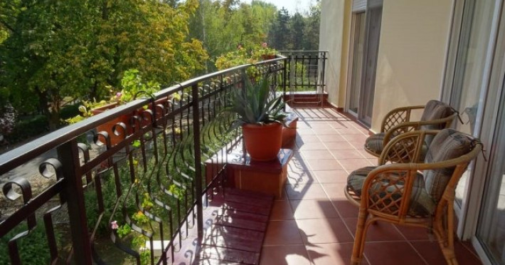 Apartament de 3 camere superior: aceste apartamente sunt situate doar la etajele superioare si sunt formate din doua dormitoare cu pat matrimonial, 2 bai decomandate cu cada/dus, living cu bucatarie deschisa, zona de luat masa, canapea extensibila de 2 persoane, terasa.