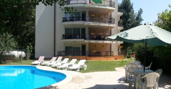 Club Topaz este inconjurat de o gradina verde in care se regaseste si piscina complexului cu o adancime maxima de 1,70 m si sezlonguri de plaja. Nu exista salvamar la piscina.