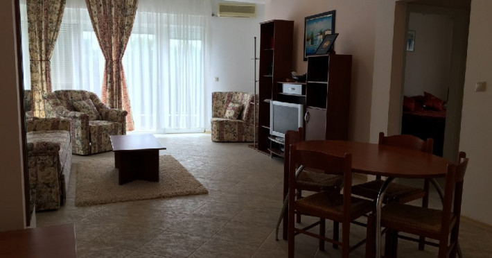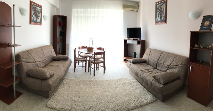 Amenajat intr-un stil modern si confortabil, apartamentul ofera toate facilitatile necesare unui oaspete la Marea Neagra. Livingul include o zona de relaxare cu canapea extensibila, televizor, aer conditionat, internet si seif. Bucataria este complet utilata, avand aragaz, frigider, vesela, cuptor cu microunde, cafetiera, masina de spalat rufe si pahare. Dormitorul principal este dotat cu pat matrimonial, iar al doilea dormitor mai mic are pat dublu. Baia este echipata cu cada.
