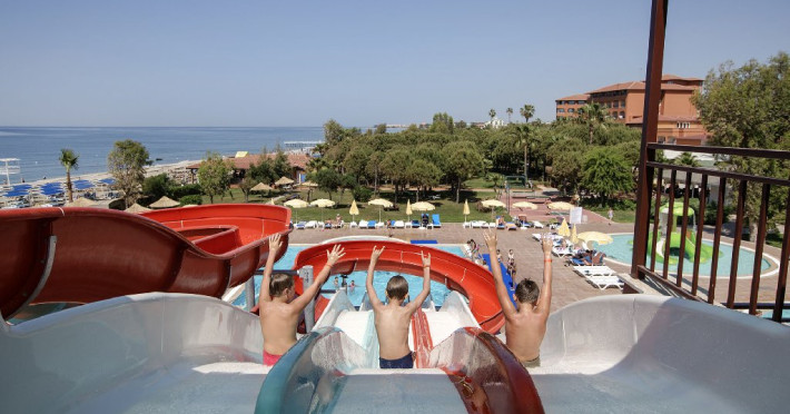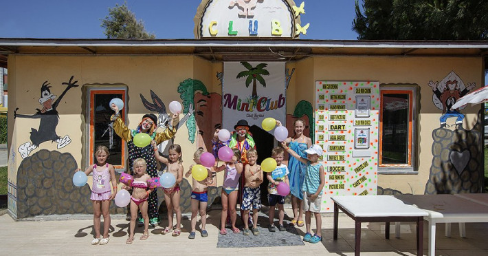 Facilitati hotel: restaurant principal pentru servirea meselor tip bufet deschis, baruri pe teritoriul complexului hotelie, piscine in aer liber si piscine interioare pentru adulti si copii, tobogane cu apa, centru de fitness, baie turceasca, sauna, teren de tenis, volei, volei pe plaja si gimnastica. Servicii cu plata: sporturi nautice, centru SPA, nocturna pentru terenuri de tenis, masaj, biliard si jocuri pe calculator. Programe de divertisment in timpul zilei, concursuri de la piscina si pe plaja, programe de seara. Mini club pentru copii de la 03 - 12 ani cu programe de zi si de seara.