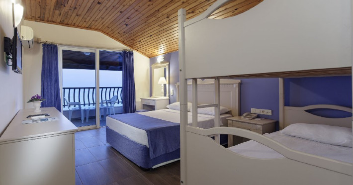 Facilitati camere: Hotelul dispune de un numar total de camere 404, impartite dupa cum urmeaza: camere standard (24mp, un dormitor cu pat + un pat dublu, o baie, max.2 + 2pax), unele camere standard sunt cu paturi supraetajate), camere junior (35mp, un dormitor si o baie, max3pax), camere family (45 mp, doua dormitoare cu usa intre ele, o baie, max.4 + 1pax).