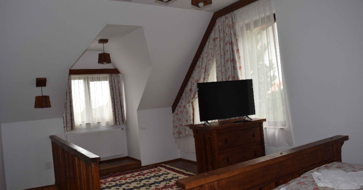 Descriere generala: Club Vila Bran este locul unde trebuie sa mergeti daca vreti sa va petreceti concediul la munte in Romania, fara sa regretati ca nu l-ati petrecut in strainatate. Club Vila Bran se intinde pe o suprafata de aprox. 60.000 mp si este format din 12 vile (cu o capacitate intre 5 si 24 camere) - 114 camere si 11 apartamente. Camerele si apartamentele dispun de balcon (112 camere si 11 apartamente), grup sanitar propriu cu cada/cabina dus, TV - cablu. Apartamentele sunt formate din 2 camere/fiecare (1 dormitor si 1 living). 3 dintre ele au sauna si cada cu hidromasaj. In serile din cadrul pachetului de Craciun se organizeaza : - spectacole cu foc de tabara, muzica folk si vin fiert, dansuri populare romanesti, - recitaluri de muzica sustinute atat de artisti locali, cat si de artisti si trupe cunoscute in Romania, petreceri cu DJ, foc de artificii. - intr-una din zilele pachetului de Craciun va invitam la o piesa de Teatru. De asemenea, veti putea folosi gratuit facilitatile bazei de agrement: -piscina acoperita si incalzita, zona SPA cu sauna umeda, sauna uscata si camera de relaxare, sala de sport cu aparate de fitness si mese de ping-pong, sala de jocuri (sah, table, sjoelen, mini - bowling, air - hockey, biliard, bank-shot), echitatie in manej (cal, ponei), tiroliana, tir cu arcul, panou de catarare, darts, teren de fotbal, zona de sanius, locuri de joaca pentru copii (interior si exterior), Clubul Copiilor, parc natural, parc istoric (12 statui reprezentand regi si domnitori din istoria noastra, incepand de la Burebista pana la Regina Maria). Echipa de Animatie Club Vila Bran va organiza pe parcursul sejurului concursuri si jocuri atat pentru adulti cat si pentru copii, Parada Mascotelor, scenete cu Mascote (la sala de Teatru), mini disco (discoteca celor mici), petreceri pentru copii cu clovni, baloane si face-painting. Toate acestea vor putea fi folosite/organizate in limita disponibilitatii si a conditiilor meteo.