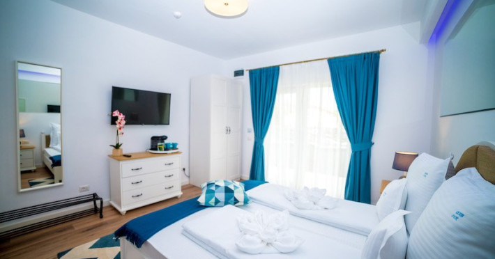 Camerele sunt dotate cu sistem de clima centralizat, TV cu ecran plat si canale prin satelit, fierbator, dulap, dus si uscator de par.