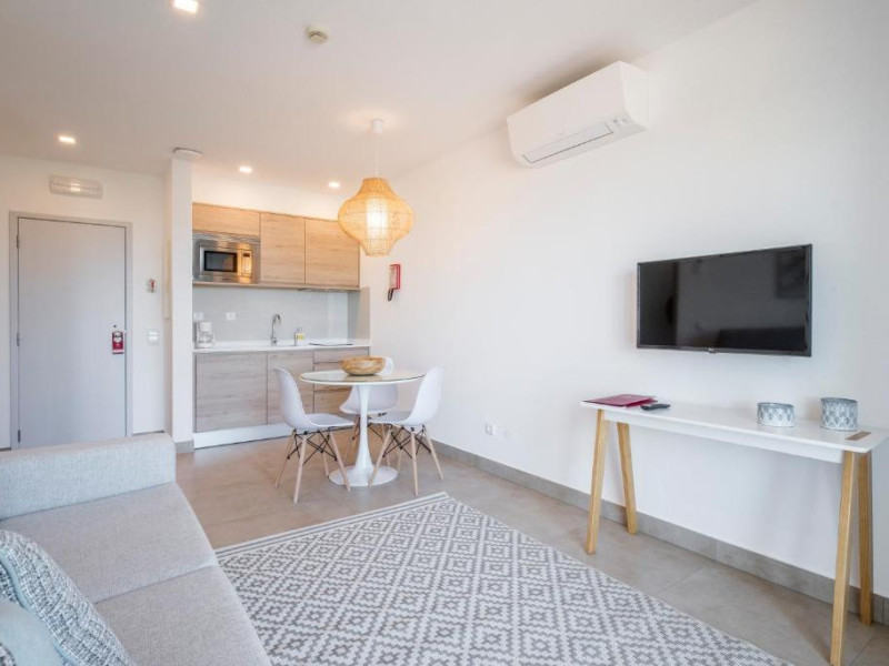 Apartamentele spațioase sunt dotate cu bucătărie complet utilată, balcon sau terasă și zonă de living confortabilă. Complexul dispune de două piscine exterioare - una pentru adulți și una pentru copii, precum și de un restaurant cu specific portughez și internațional.