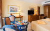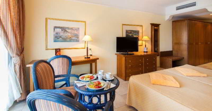This air-conditioned hotel offers a total of 114 rooms spread over 3 floors, of which 10 are single rooms, 89 are double rooms and 15 are suites. Guests are offered the use of a 7,000 m² garden and pool area with a sun terrace, and a stylish lobby with lifts, safes, a currency exchange desk and a 24-hour reception. Furthermore, there is a games room, a TV room, a hairdressing salon, a café, a friendly bar and an air-conditioned non-smoking restaurant with childrens highchairs available on request. There is a conference room and Internet access available for business guests. Additional services include a room and laundry service as well as medical assistance. There are parking facilities for those arriving by car..This elegant luxury hotel is ideally situated, just 250 metres from a fine-sand beach. The centre of San Comas, with numerous shopping and entertainment venues, is only a short walk away. Palma airport is 60 km from the hotel..The stylish en suite rooms are fitted with a hairdryer, a telephone, satellite/cable TV, a minibar, air conditioning, central heating, balcony or terrace and a safe..There is a delicious buffet available at breakfast, lunch and dinner. It is possible to book a half-board stay and all-inclusive stays..The hotel offers its own indoor swimming pool, an outdoor swimming pool with snack bar, deck chairs and parasols, a gym and a spa area with a hot tub, sauna, steam room, solarium and massage service..The hotel accepts American Express, Diners Club, MasterCard and VISA as payment options.Datorita dinamicitatii domeniului disponibilitatea ofertelor se modifica de la un moment la altul. De aceea ofertele sunt valabile in limita locurilor disponibile. Agentia nu este responsabila pentru eventualele neconcordante care pot aparea intre informatiile privind tarifele si alte detalii din site si informatiile primite in agentie. In aceste cazuri vor avea prioritate, intotdeauna, informatiile primite in agentie.