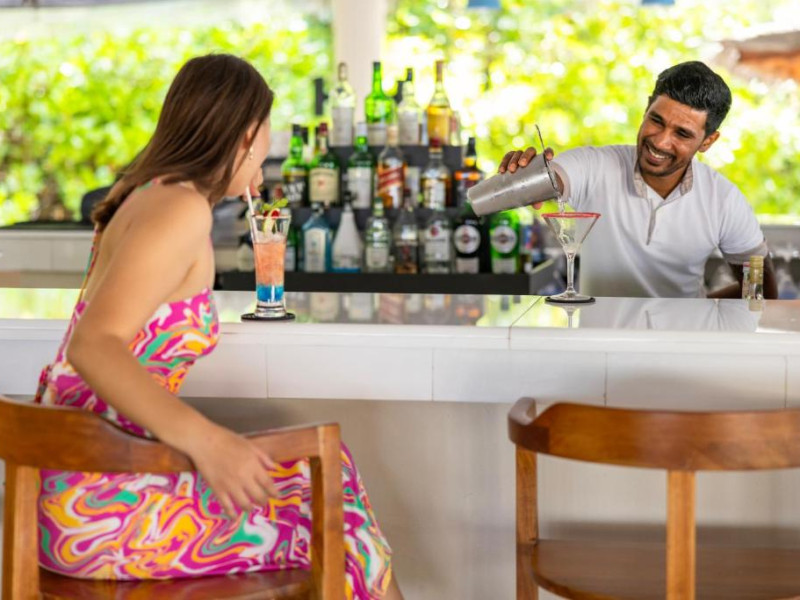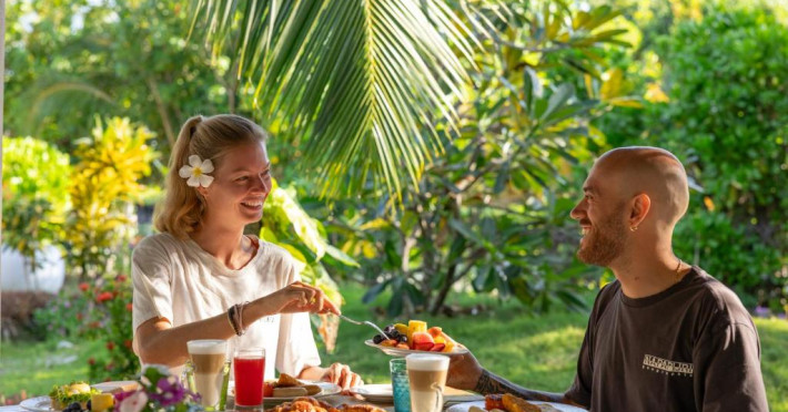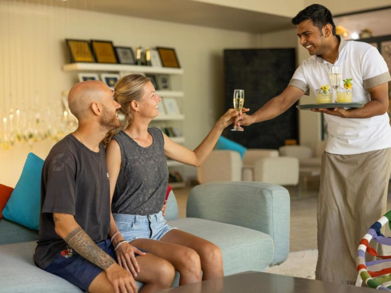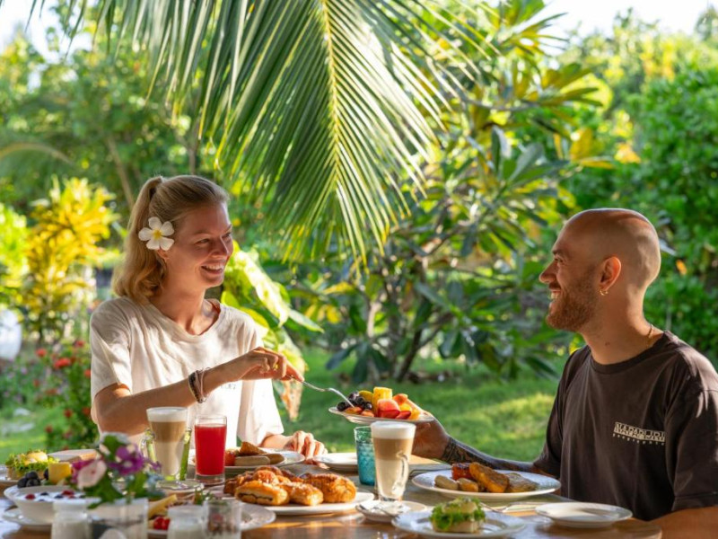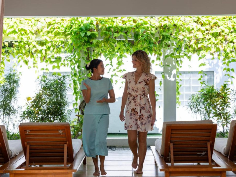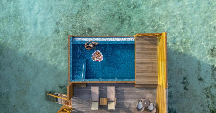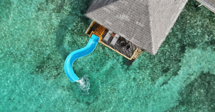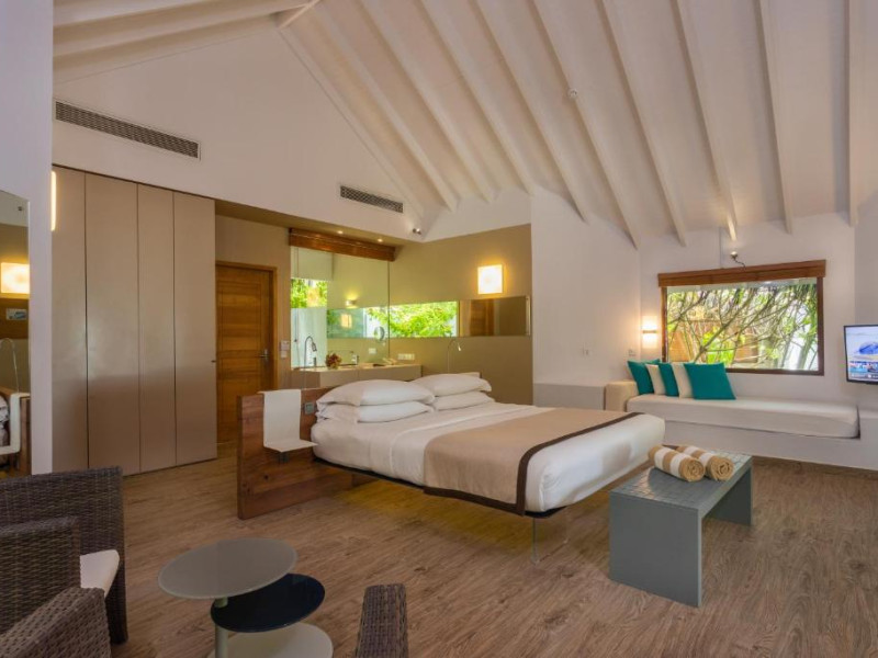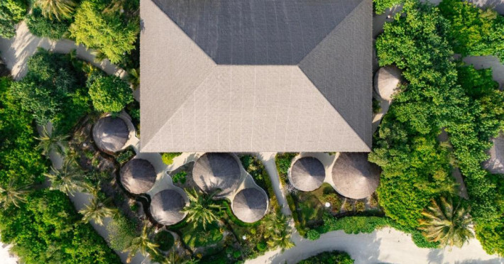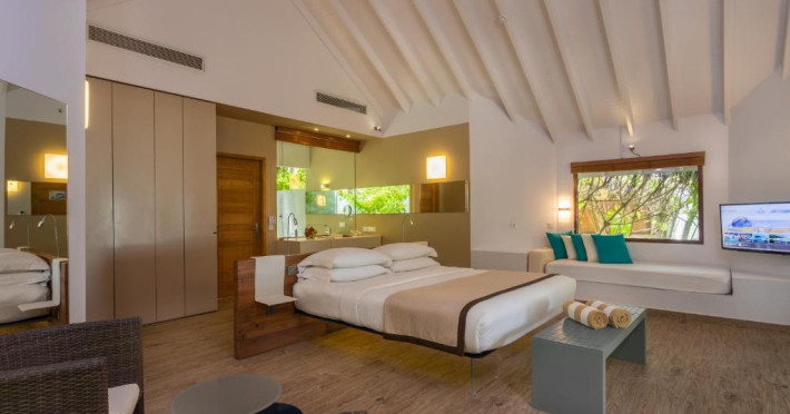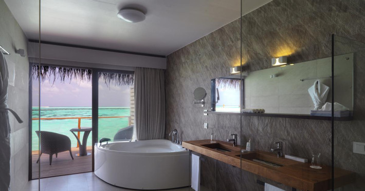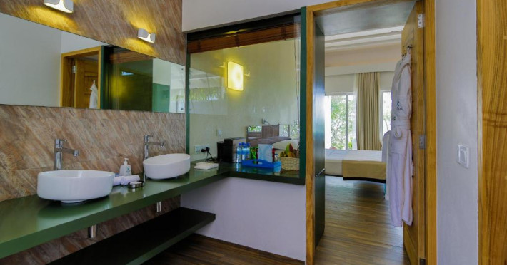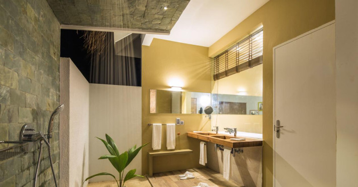 Toate unitățile de cazare sunt inconjurate de vegetație ce poate fi văzută prin pereții din sticlă care despart camerele de baia in aer liber. Acest design creează o senzație de comuniune cu natura incadrată contrastant de nemărginirea turcoaz a mării.