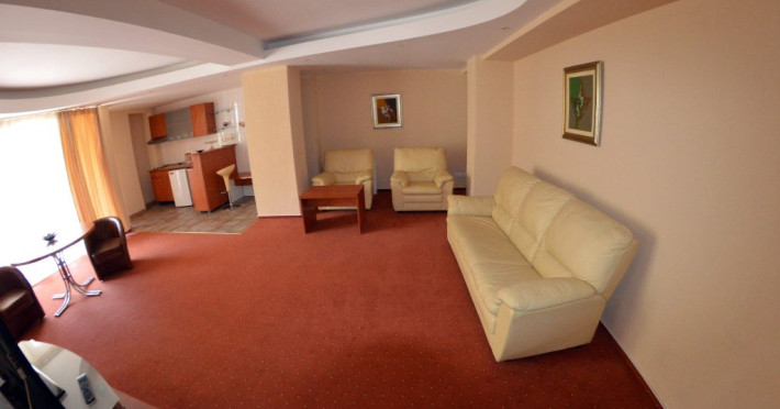 - Junior Suite = dormitor cu pat matrimonial si living cu canapea extensibila. Se poate instala un pat pliant gratuit, la cerere, in functie de disponibil.