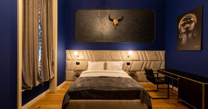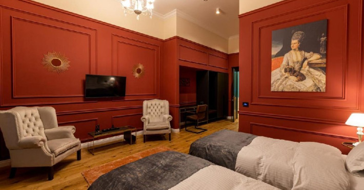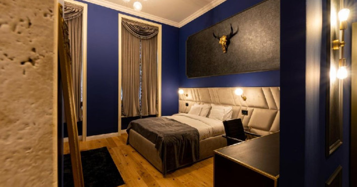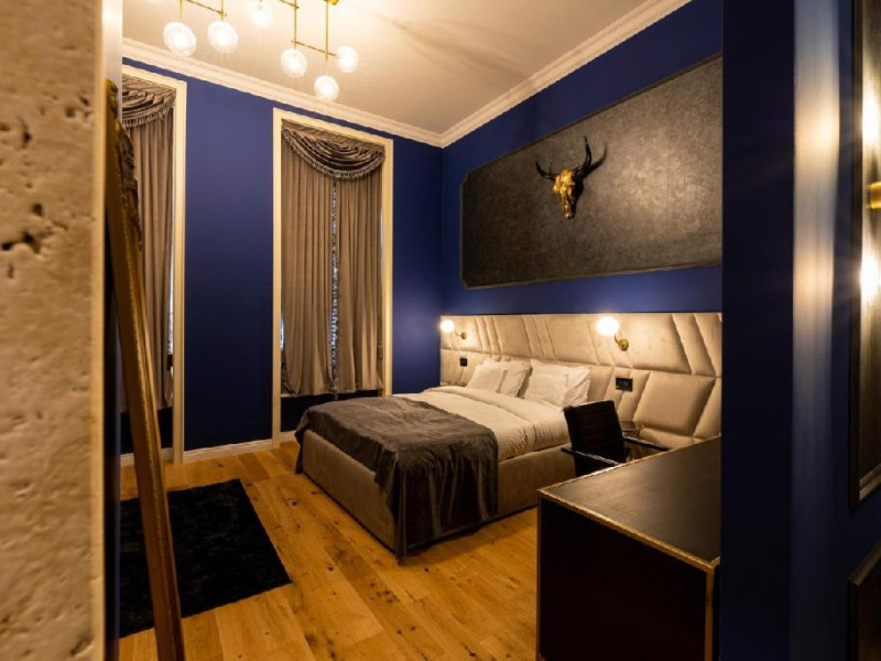 Situat chiar langa centrul orasului, hotelul atrage atentia oricrui trector prin designul unic, iluminat arhitectural impresionant cu grdina superb care pare desprins din povesti. Pur si simplu te face s uiti de toate grijile si problemele cotidiene.Hotelul este structurat pe 2 niveluri si isi intampin zilnic oaspetii cu 12 camere moderne, inalte si spatioase, cea mai mare camer fiind de 67 m2. Toate camerele au un design unic, ofer diversitate ca s poti alege exact stilul potrivit personalittii tale si sunt dotate cu paturi matrimoniale si seifuri.