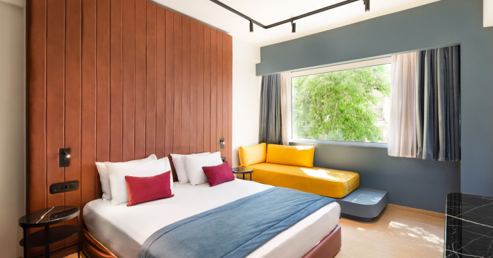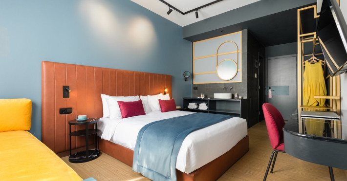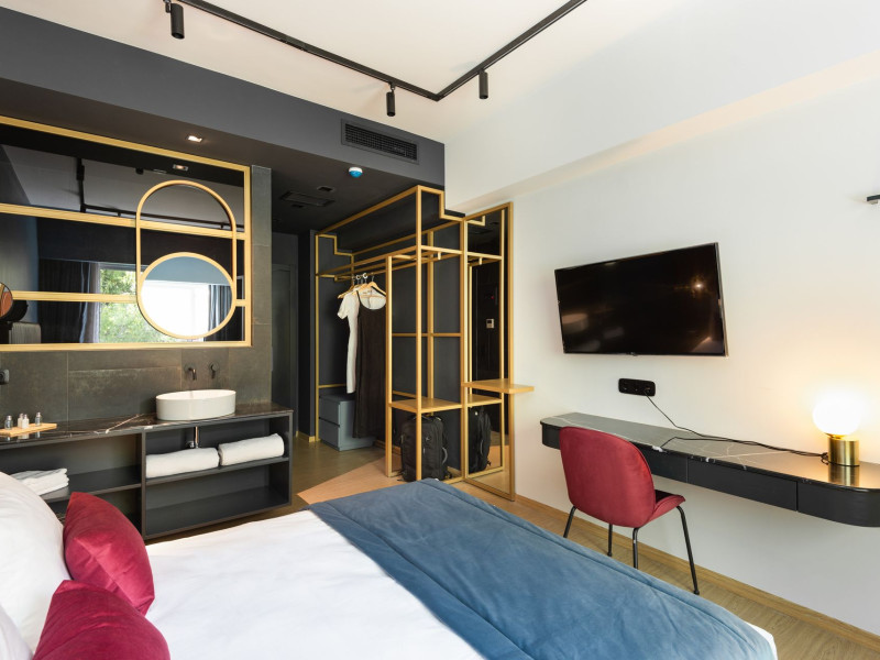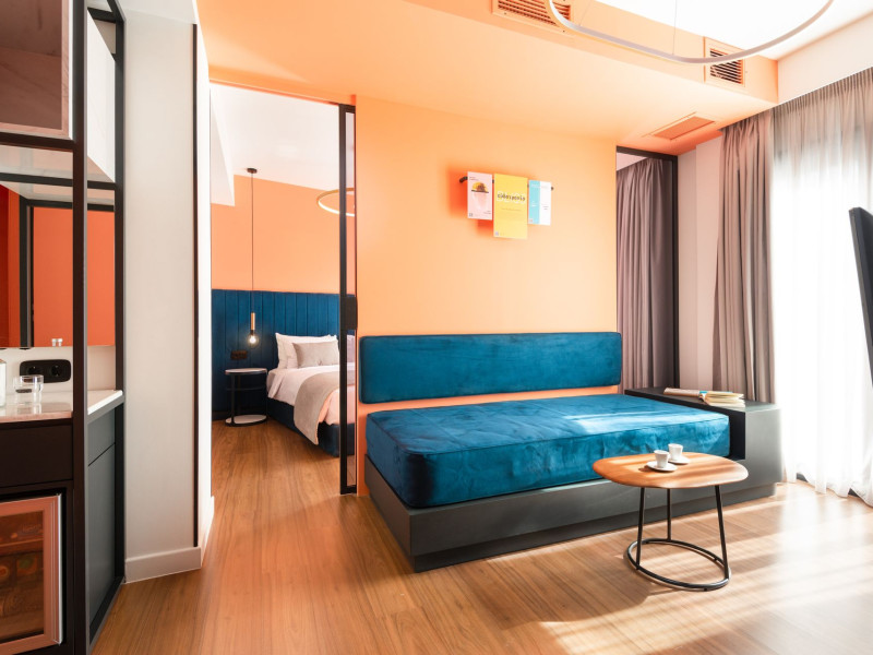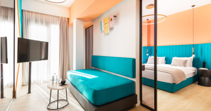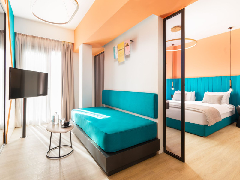At the very centre of Athens, in COLORS Hotel Athens, you will enjoy a statement design that combines luxury and minimalism in a perfect balance.Let us spoil you –it is what we do best: a COLORS ambassador is at your service 24 hours a day, at the front desk. We will be happy to schedule your day together and share with you our little local secrets and surprises!Free Wi-Fi is standard as well as 43” satellite smart TVs.An award-winning interior design is great but it would be nothing without functionality: in COLORS Hotel Athens every room features a comfortable working desk as well as a sitting area and -of course- the most comfortable beds to ensure you enjoy a great night’s sleep. All magical highlights the city has to offer such as lively neighbourhoods, main businesses, cultural, entertainment and shopping areas are only minutes away for you to enjoy, when you wake up fresh the next morning!Refreshing drinks and cocktails can be savoured at the bar or in the lounge.The tube station is at a short 400m stroll distance and Athens International Airport, Eleftherios Venizelos, is 20km away.We speak your language!At the very centre of Athens, in COLORS Hotel Athens, you will enjoy a statement design that combines luxury and minimalism in a perfect balance.Let us spoil you –it is what we do best: a COLORS ambassador is at your service 24 hours a day, at the front desk. We will be happy to schedule your day together and share with you our little local secrets and surprises!Free Wi-Fi is standard as well as 43” satellite smart TVs.An award-winning interior design is great but it would be nothing without functionality: in COLORS Hotel Athens every room features a comfortable working desk as well as a sitting area and -of course- the most comfortable beds to ensure you enjoy a great night’s sleep. All magical highlights the city has to offer such as lively neighbourhoods, main businesses, cultural, entertainment and shopping areas are only minutes away for you to enjoy, when you wake up fresh the next morning!Refreshing drinks and cocktails can be savoured at the bar or in the lounge.The tube station is at a short 400m stroll distance and Athens International Airport, Eleftherios Venizelos, is 20km away.We speak your language!