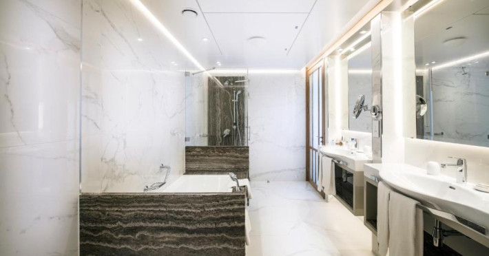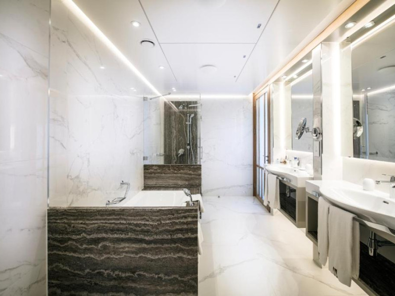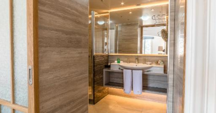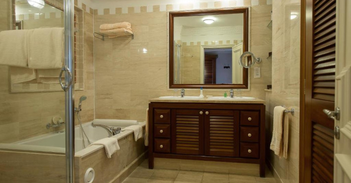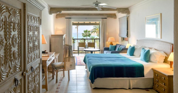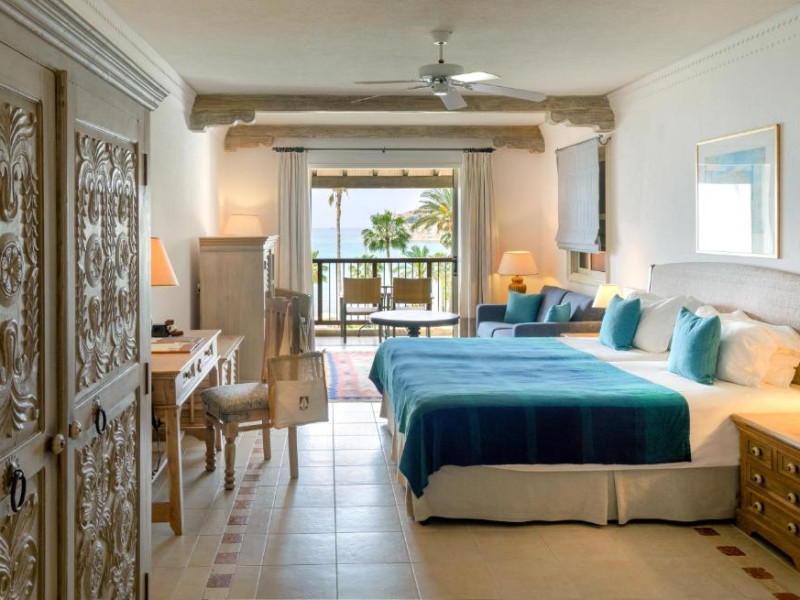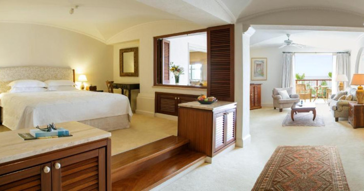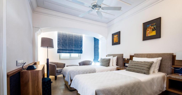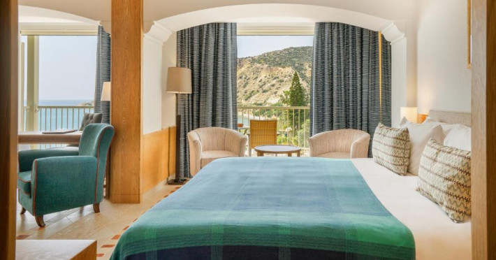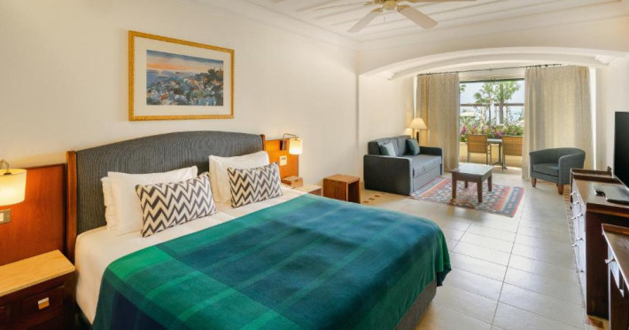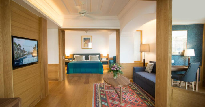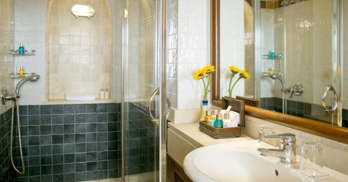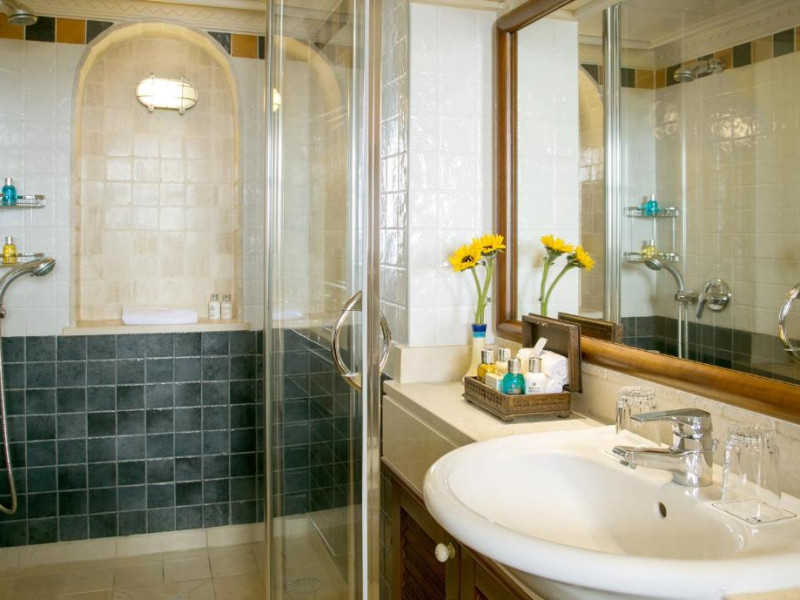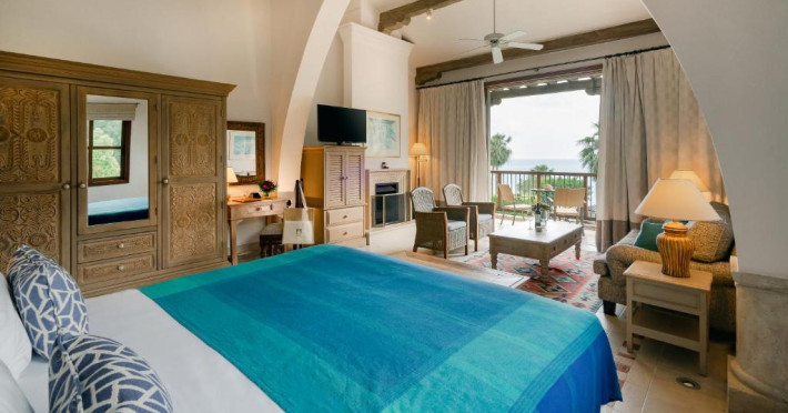 All suites have stone floors, natural wood furnishings and shutters, and overhead ceiling fans to keep them cool. Each has a balcony with views of the gardens or the sea. Facilities include Nespresso coffee makers, Molton Brown toiletries, bathrobes and slippers.