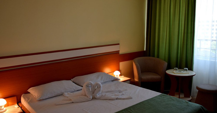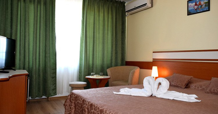 Camerele duble superioare - sunt dotate cu baie cu dus, aer conditionat, televizor/cablu tv, minibar si balcon cu mobilier, sunt orientate spre Nord statiunea Neptun-Olimp.