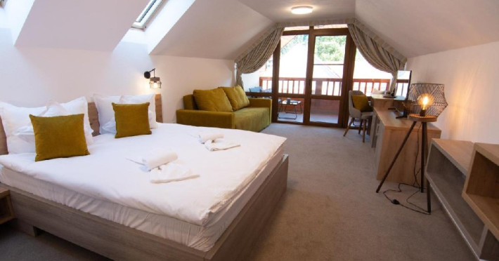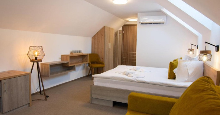 Unitatea de cazare dispune 14 camere moderne si confortabile pentru 2 persoane, si 2 apartamente. Camerele sunt dotate cu pat matrimonial sau cu doua paturi individuale, grup sanitar propriu, televizor LCD,aer conditionat, frigider mic, balcon, conexiune la internet gratuit, uscator de par, incalzire centrala etc.