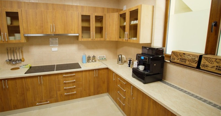 Pensiunea dispune o bucatarie comuna si o sala de mese.