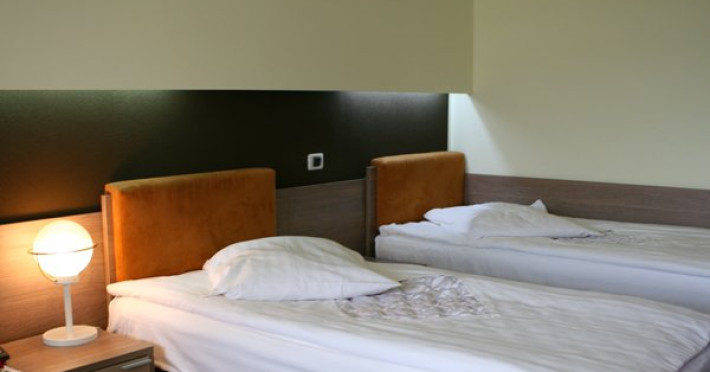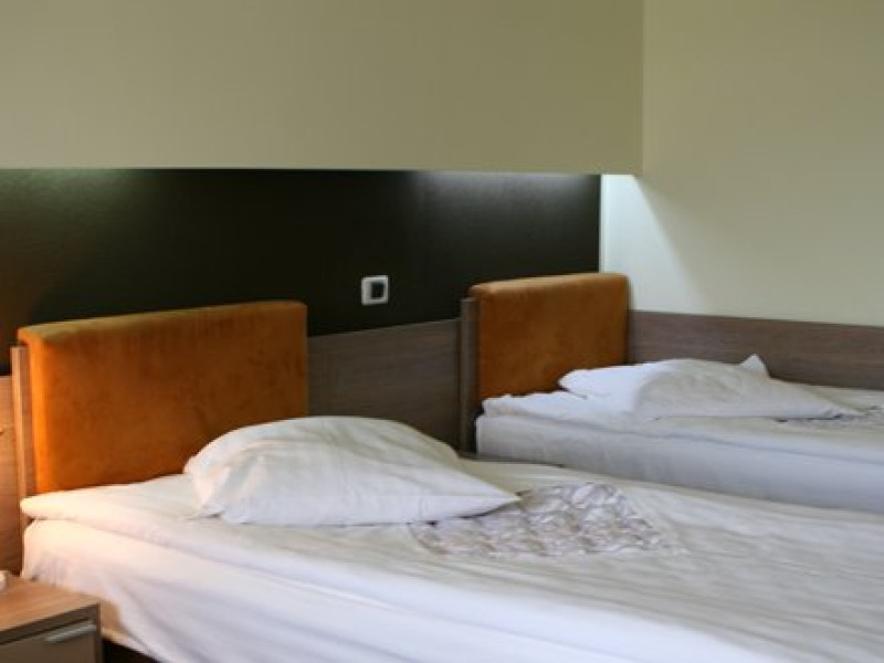 Cele 18 camere duble twin sunt dotate cu televizor, telefon, radio, minibar, baie cu cada. Dispuse pe trei nivele, pot fi cazate si in regim single. Camerele mansarda dispun de aer conditionat si baie cu dus.