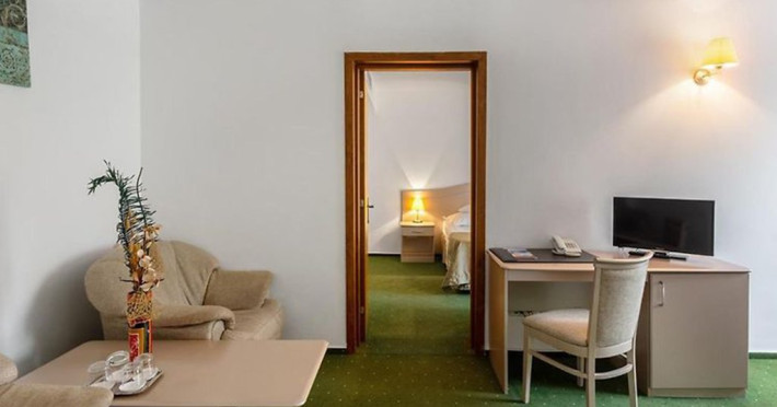 Apartamentele cu balcon/fara balcon, cu o suprafata de aproximativ 35 mp, sunt compuse din dormitor cu pat matrimonial, living cu canapea extensibila (120x180 cm) si birou, separate de usa si baie cu dus. Unele apartamente au balcon.
