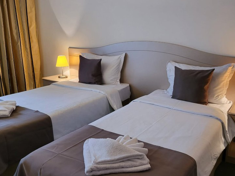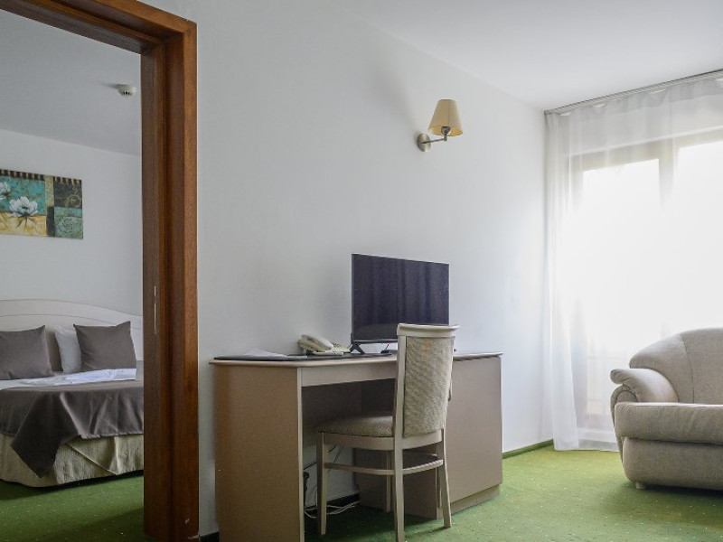 Camerele sunt dotate cu paturi matrimoniale (160x200 cm) sau 2 paturi twin (90x200 cm) - repartizarea se face la receptie in momentul cazarii, TV, acces pe baza de card magnetic, minibar, telefon, birou, fotolii, baie cu cabina de dus si obiecte de toaleta.