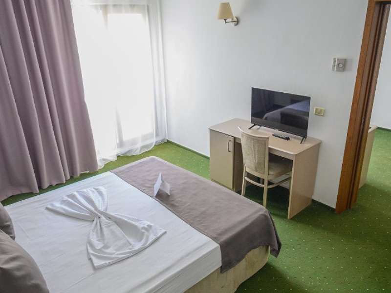 Camerele duble family cu balcon, suprafata de aproximativ 16 mp, dispun in plus si de o canapea extensibila (90x180 cm) , cu vedere spre faleza.