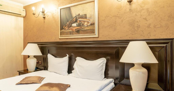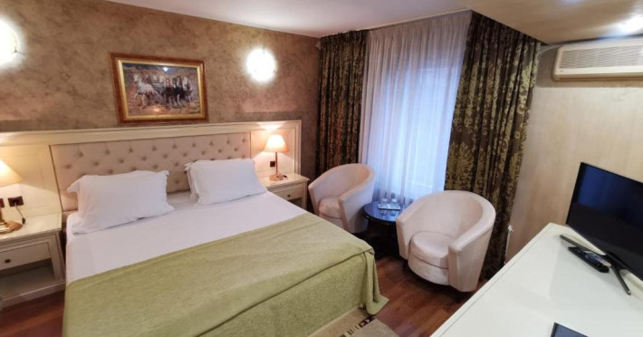 Camerele sunt decorate in stil clasic sunt dotate cu aer conditionat, wi fi, minibar, tv cu cablu, telefon, baie cu dus/cada/cadita, uscator de par, cosmetice hoteliere, papuci si fierbator.