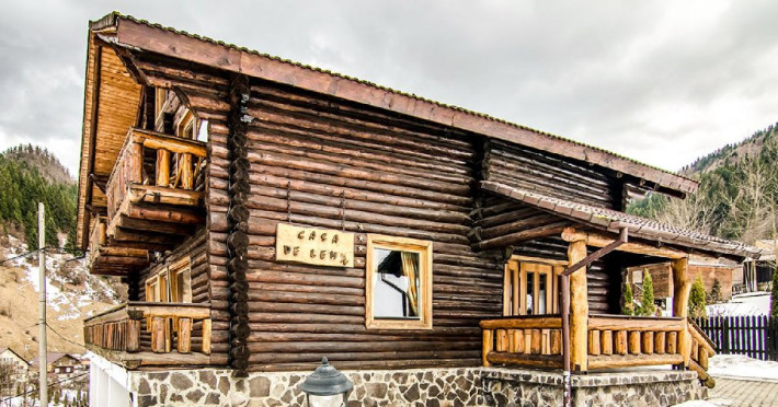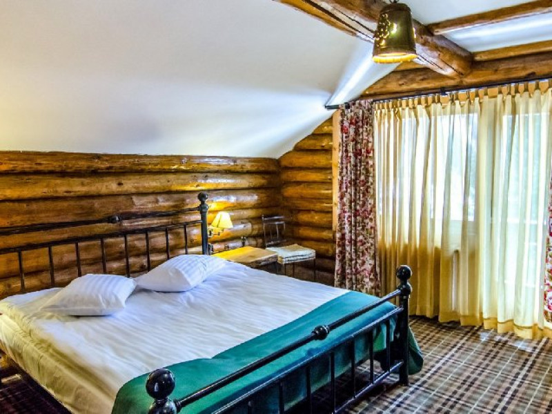 Vila de Lemn 3* - 5 camere duble matrimoniale. Living spatios, o mica bucatarie.