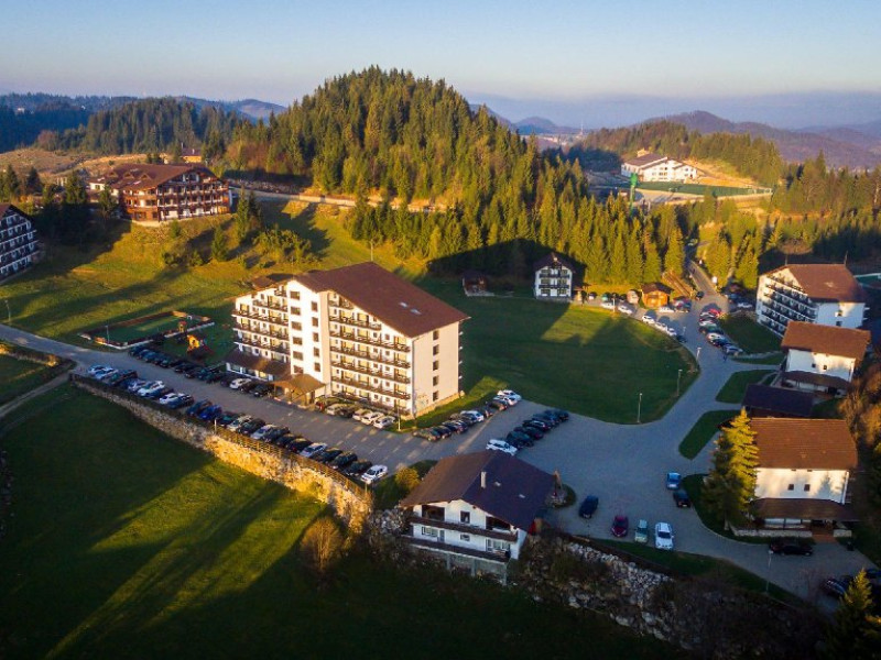 Hotel Gradistea 3* - 18 camere duble matrimoniale, 22 camere duble twin, 5 garsoniere (pat matrimonial si canapea extensibila). este amplasat in partea superioara a Resortului Moeciu si ofera o priveliste minunata asupra intregii locatii.