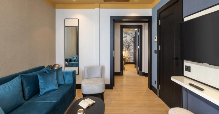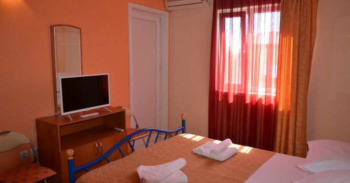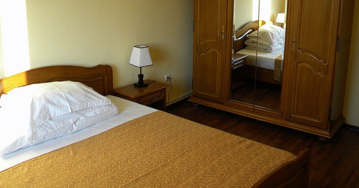 Studio 2 camere familia este compus din living cu canapea extensibila, un dormitor matrimonial cu balcon, baie cu cabina de dus, chicineta (microunde, filtru de cafea, vesela). Plita pe gaz este optionala si se achita suplimentar 60 lei/zi. Studioul este dotat cu tv si aer conditionat in dormitor. Exista usa intre camere. Suprafata 45 mp.