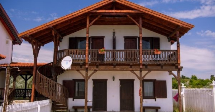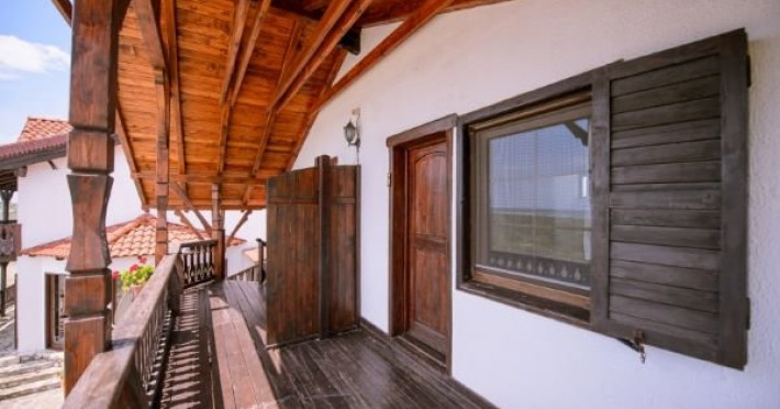 Cele doua camere de la etaj au balcoane din lemn traforat cu vedere directa la mare iar camerele situate la parter, atat cele cu fata la mare cat si cele cu fata spre curte dispun de pridvor.
