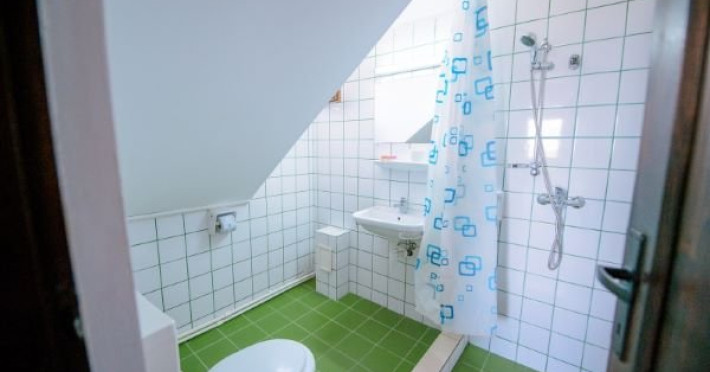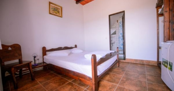 Este alcatuita din sase camere fiecare cu dus si frigider, patru din camere cu fata spre mare, doua la parter si doua la etaj, si doua camere la parter cu fata spre curte.