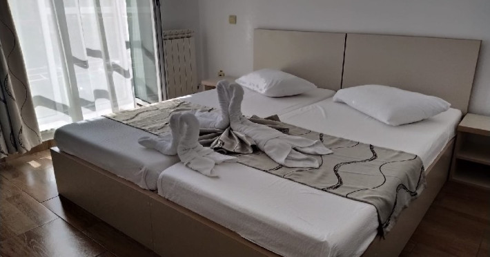 Apartament fara terasa (fara balcon): camera mare - pat de 180x200cm; 21 mp; camera mica - canapea extensibila 117x190cm; capacitate maxima 2 adulti si 2 copii sau 3 adulti si un copil
