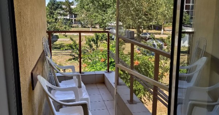 Apartament cu balcon: camera mare - pat de 180x200cm; 23 mp; camera mica - canapea extensibila 117x190cm; camera mica - canapea extensibila 110x190cm; capacitate maxima 4 adulti, 2 adulti si 2 copii sau 3 adulti si un copil