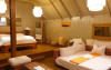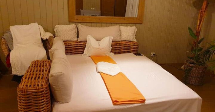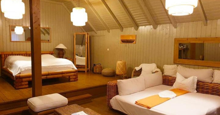 Stilul decorativ, de un lux neostentativ, se remarca prin grija pentru detaliu. Peretii lambrisati in lemn patinat si mobilierul colonial din bambus cu drapajele din in brut, aduc in interior culorile subtile si calde ale deltei. Baile sunt generoase, cu finisaje impecabile, si toaleta separata. Turistii se pot racori inca de la primele ore ale diminetii, datorita aerului conditionat din camera si a unui minibar echipat complet. Vilele sunt inconjurate de o salba de lacuri, cu nuferi si alte plante de apa, unde cuibaresc rate salbatice, pe care le puteti urmari in timp ce va savurati cafeaua.