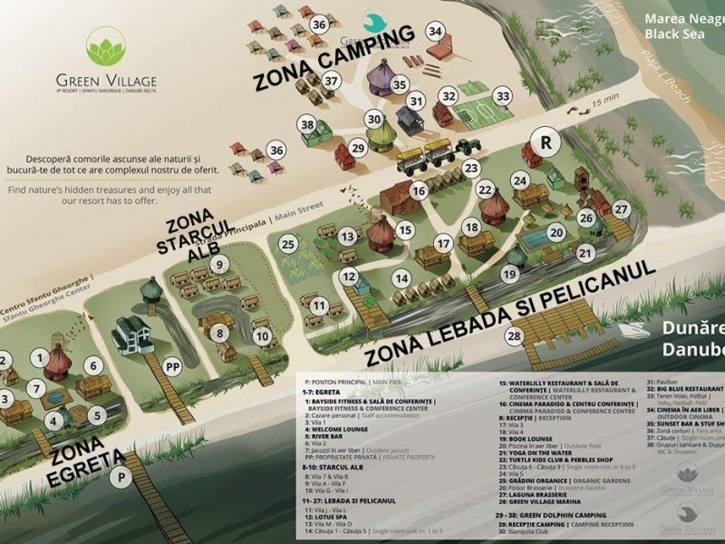 Zona Marina cuprinde accesul barcilor proprii, persoanelor cazate in cadrul Resortului Green Village.