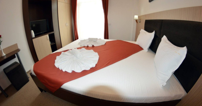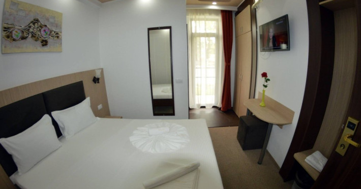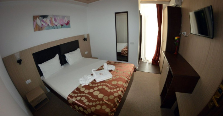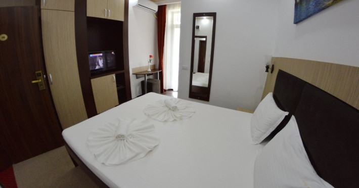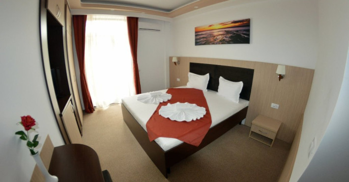 Camere: toate sunt dotate cu TV led, minifrigider, aer conditionat, baie proprie cu wc, cabina de dus, uscator de par, oglinda cosmetica, balcon, plase de tantari. Accesul in camere se face pe baza de cartele mecanice.