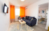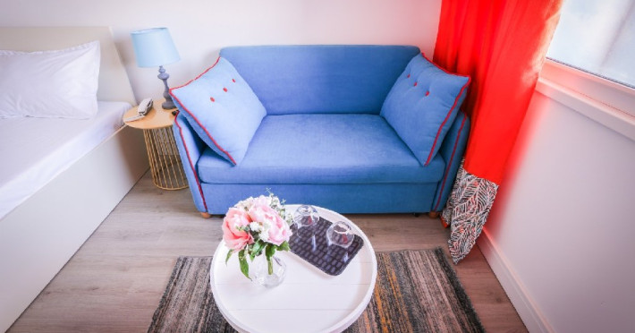 Camera dubla matrimoniala - cuprinde un spatiu deschis cu o suprafata de 18 mp, zona pentru dormit cu un pat matrimonial, cu sau fara canapea extensibila 134cm x 194cm , baie cu dus, balcon.